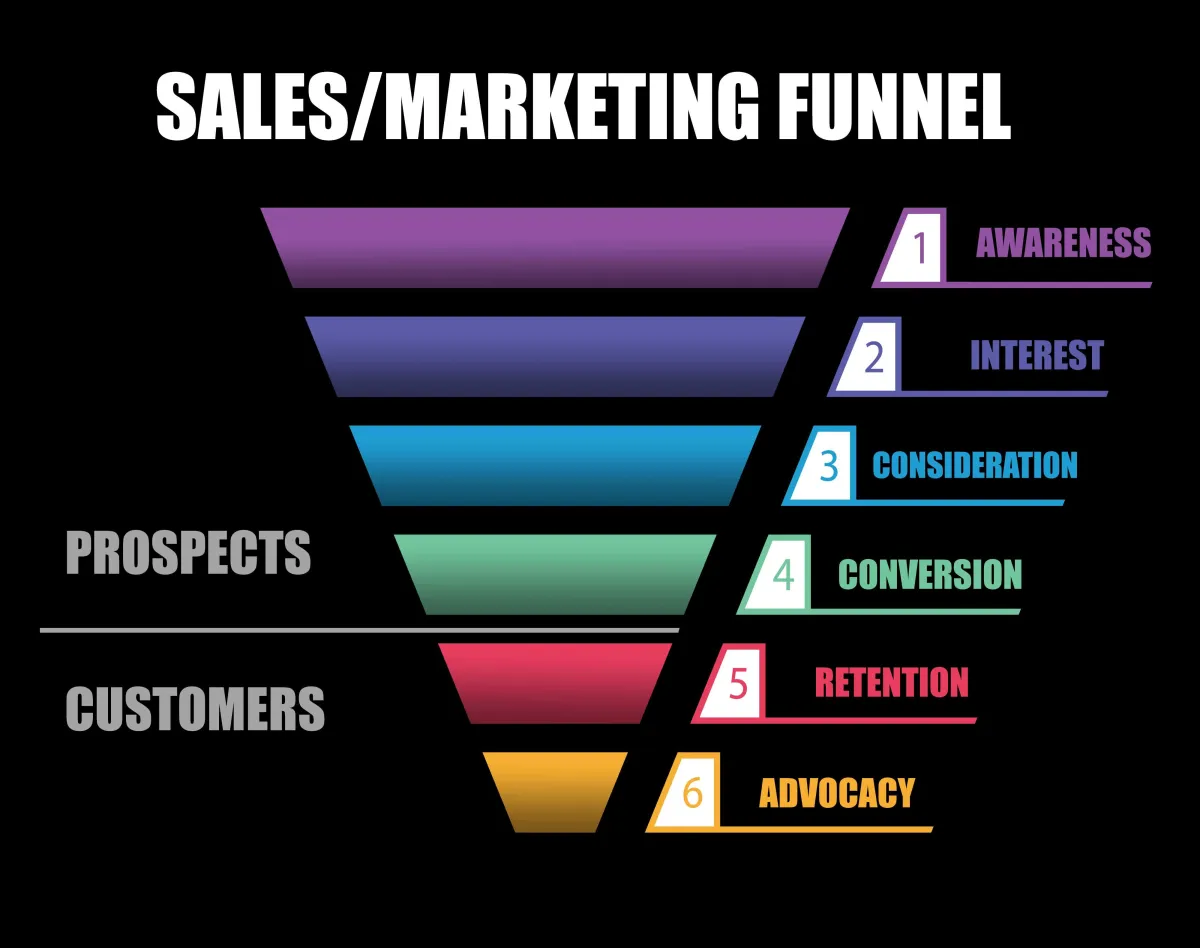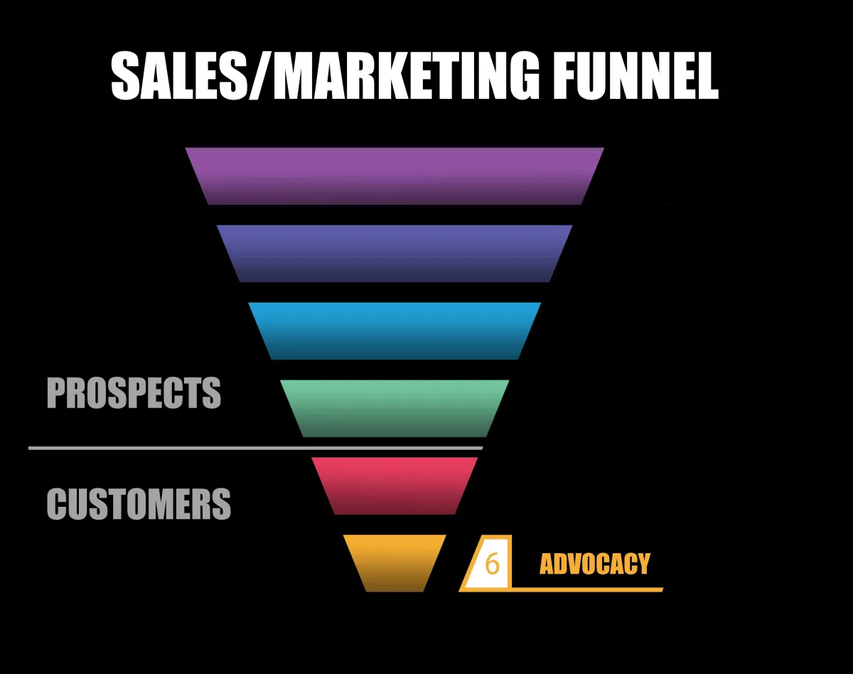 Marketing is ineffective unless all stages of the marketing funnel — Awareness, Interest, Consideration, Conversion, Retention, and Advocacy